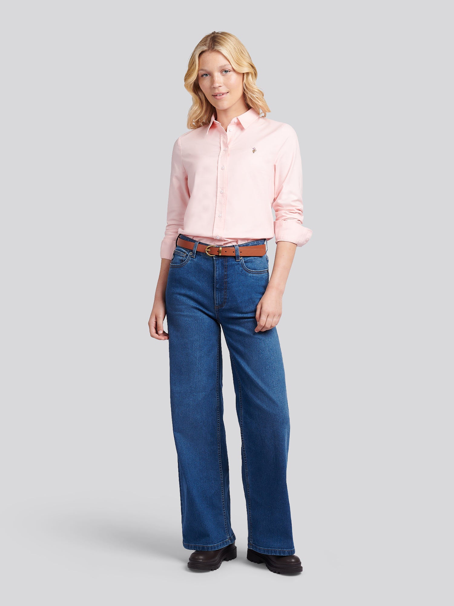 Women Classic Fit Shirt Poplin w Crystal Rose
