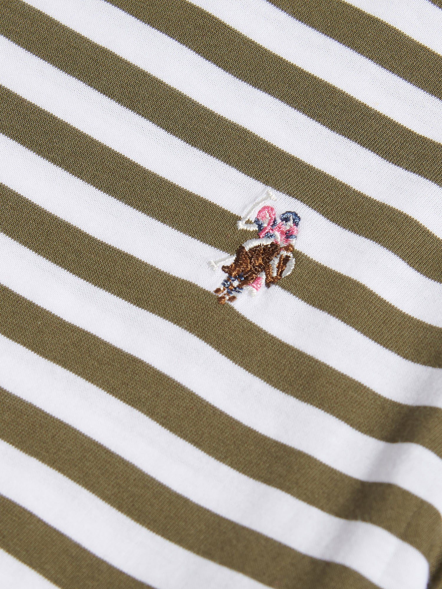 Ten U.S. Polo Assn. Damska koszulka z okrągłym dekoltem w paski wnosi odrobinę swobodnej elegancji do każdej garderoby dzięki klasycznemu wzorowi w paski i luźnemu krojowi, który jest równie wygodny, jak wygląda. Idealna do noszenia warstwowo lub solo, ta koszulka bez problemu uzupełnia dżinsy, szorty lub swobodną spódnicę, zapewniając wyrafinowany, ale swobodny wygląd.