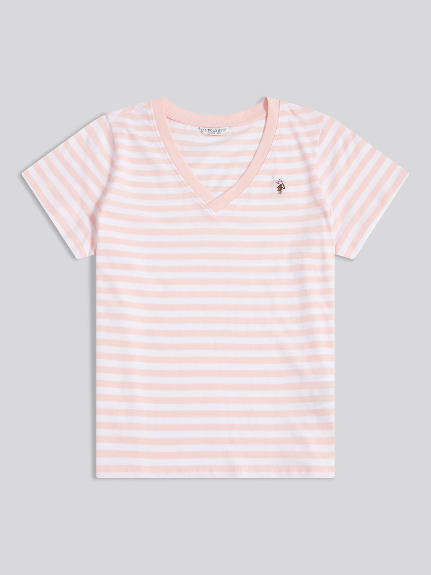 Step into effortless style with the U.S. Polo Assn. Womens Stripe V-Neck T-Shirt. Perfect for casual days, this tee adds a touch of sophistication to your look. Pair with jeans or chinos for an effortlessly chic outfit.
