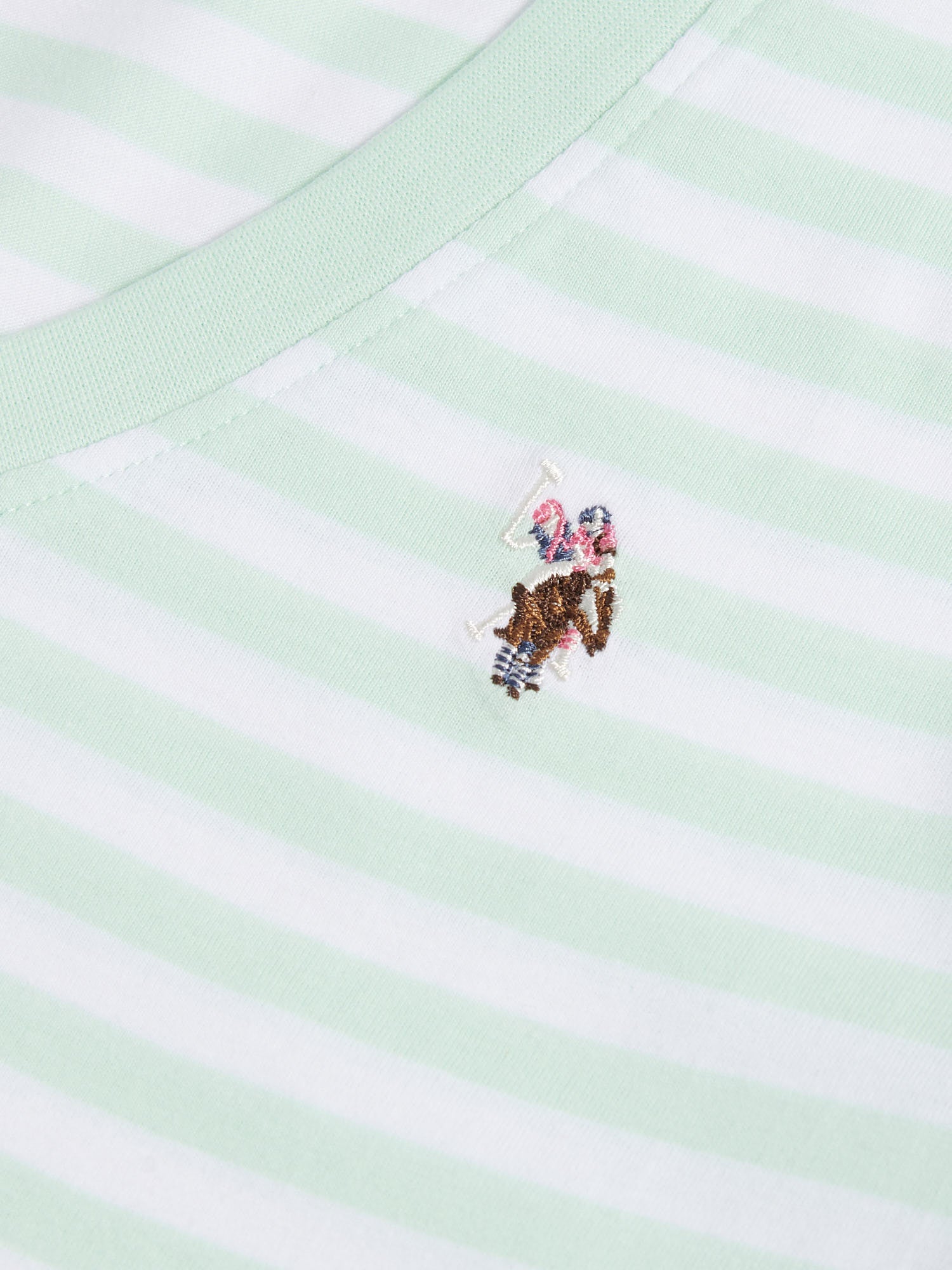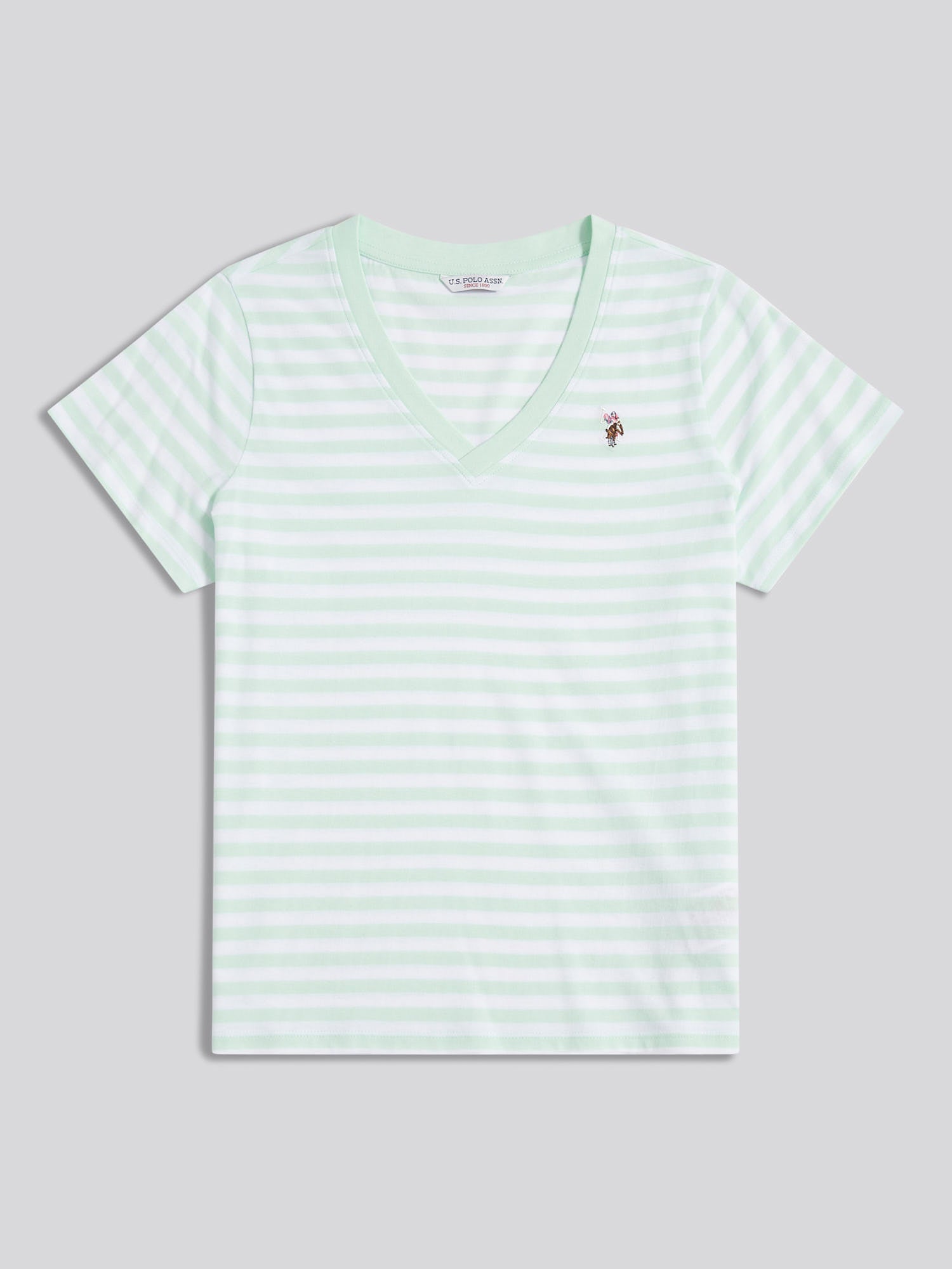 Step into effortless style with the U.S. Polo Assn. Womens Stripe V-Neck T-Shirt. Perfect for casual days, this tee adds a touch of sophistication to your look. Pair with jeans or chinos for an effortlessly chic outfit.